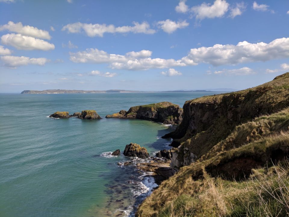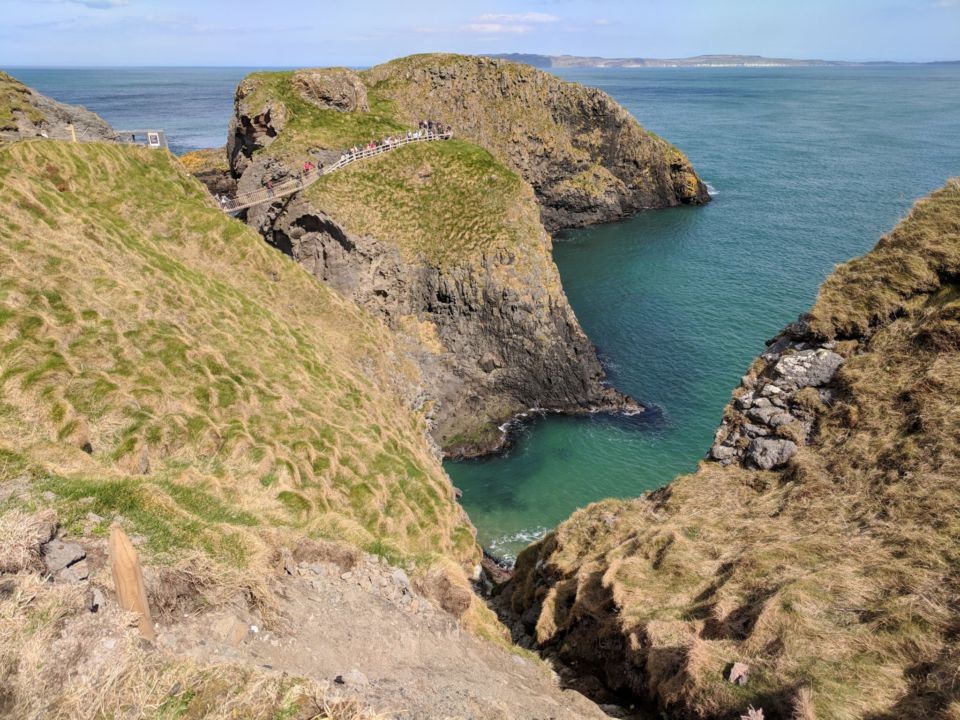 Danach ging es weiter am Castle Black aus Game of Thrones vorbei (leider nur aus sehr weiter Entfernung, deswegen habe ich kein gutes Foto schießen können) zur Carrick-a-Rede Rope Bridge. Wir hatten unglaubliches Glück mit dem Wetter und die Aussicht von den Klippen war atemberaubend. Auf der Brücke selber waren wir nicht. Der Eintritt von 8 Pfund pro Person waren uns die paar Sekunden auf der Brücke nicht wert. Es gibt extra Ausichtspersonal, welches darauf achtet, dass man ja nicht zu lange auf der Brücke verweilt.