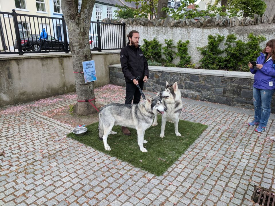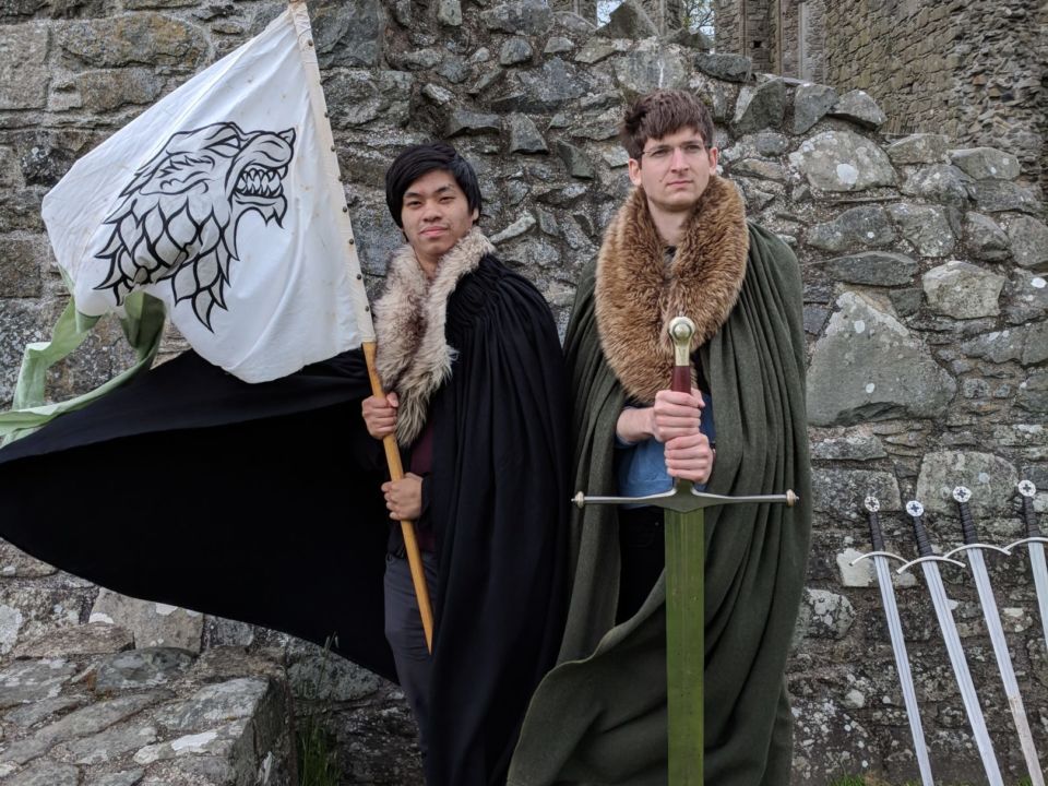 Nach dem Essen durften wir zwei „Hunde“ bestaunen, die in GoT in den ersten Staffeln die Schattenwölfe/Direwolves gespielt haben. Sie hatten mittlerweile auch fast die Größe eines Wolfes erreicht. Die Familie, denen die Hunde gehören, war eng mit GoT verbunden. Vater und Söhne spielen seit der ersten Staffel verschiedene Rollen, als letztes waren die drei Söhne „White Walkers“.
