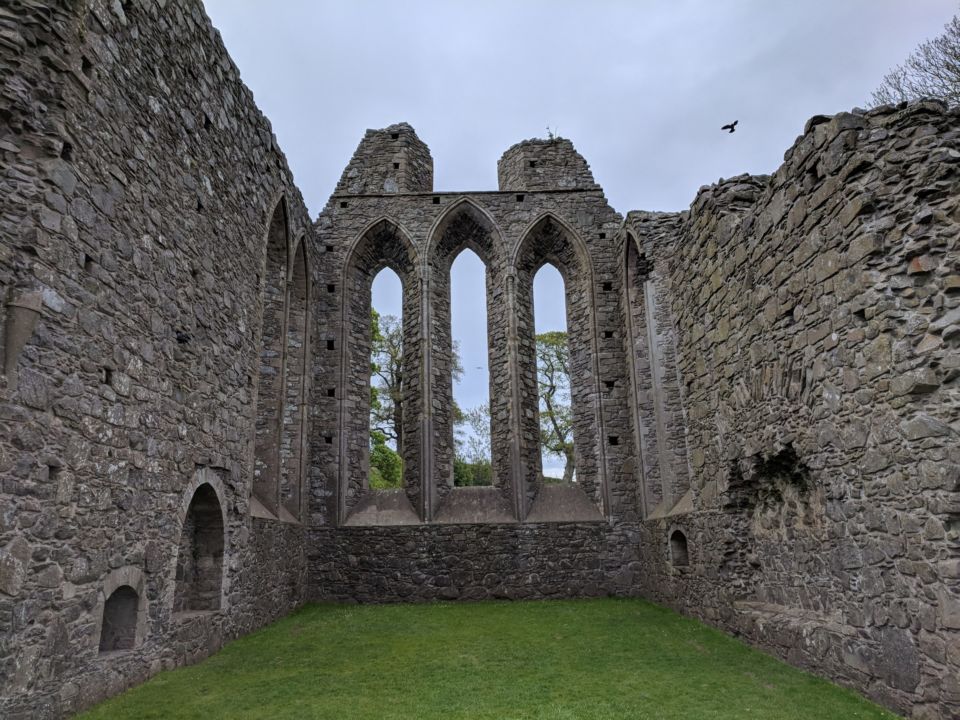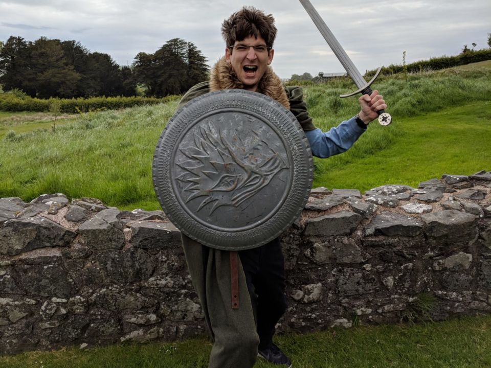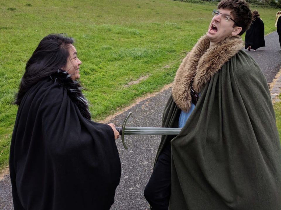 Unser nächster Stop war an einer alten Kapelle, die mittlerweile zu einer Ruine verfallen war. Es war mit Abstand der lustigste Teil der Tour, denn wir durften uns mit langen Mänteln und echten Metallschwertern ausstatten und damit die Ruine unsicher machen.