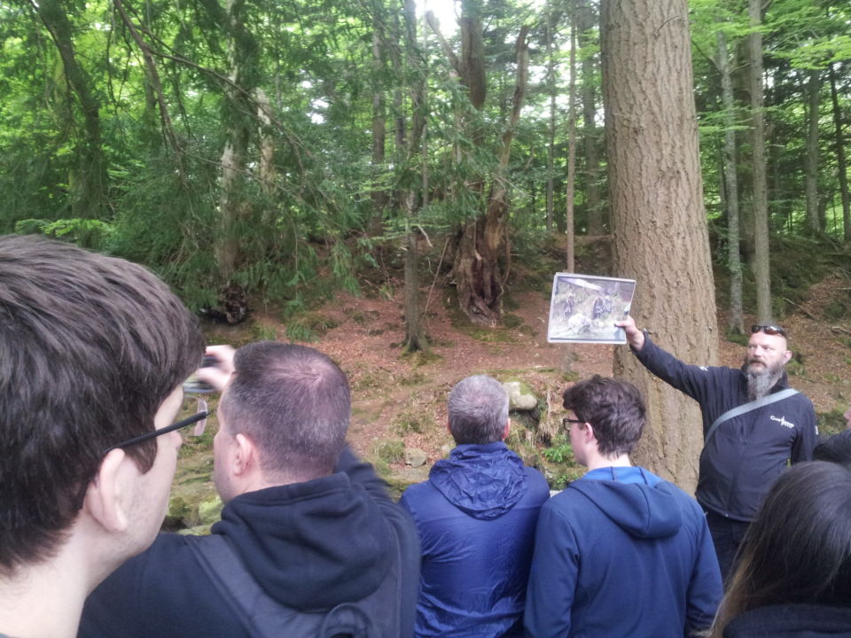 Als letztes fuhren wir zum „Geburtsort“ der Serie, dem Ort, an dem die erste Szene überhaupt gedreht wurde. Dafür wanderten wir in einen dichten Wald. Für die Szene, die ca. drei Minuten dauert, wurden drei Wochen gedreht und es musste ein großer Teil des Waldes mit Papierschnee gefüllt werden. Der Wald war sehr beeindrucked und es gab viele schöne Orte zu bestaunen.